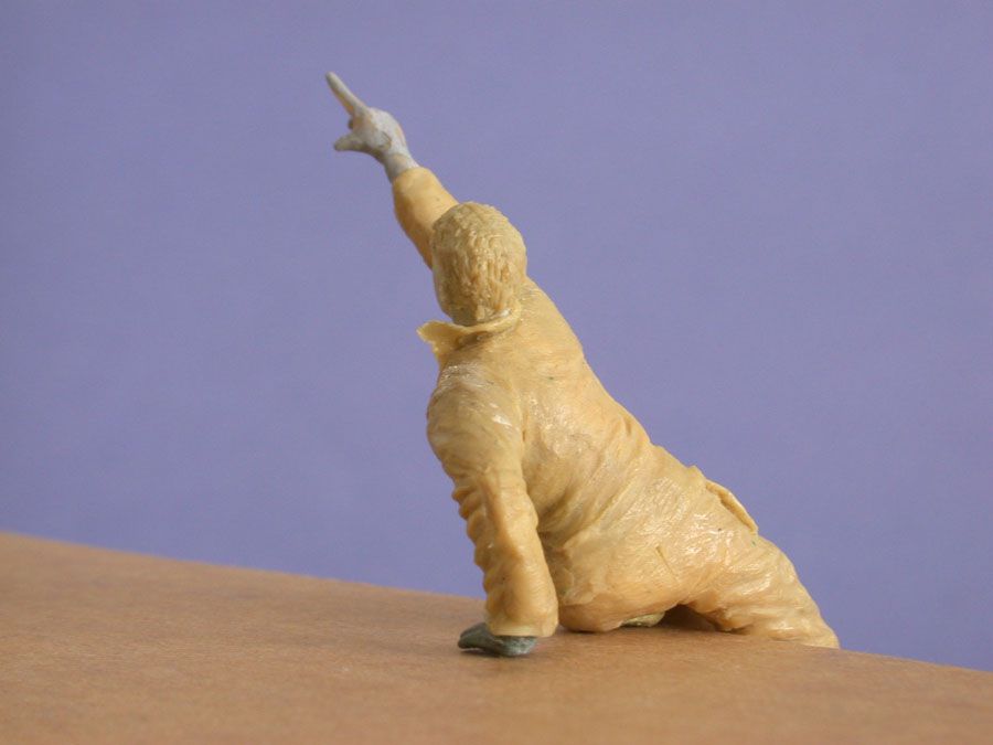 - Sculpter, modeler les vêtements avec le même produit, placer les mains, l’équipement ….en gardant une constante attention au respect des proportions. Une comparaison avec des figurines du commerce est un bon moyen de le vérifier.