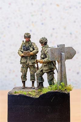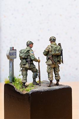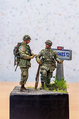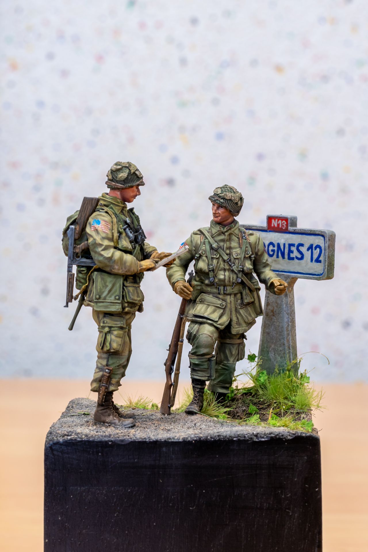 Parachutés sur la DZ près de Neuville-au-Plain, le long de la Nationale 13. Ils cherchent à s'orienter pour rejoindre Sainte-Mère-Église.
