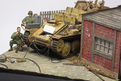 La maquette a donc été montée directement de la boîte. Le seul élément ajouté à signaler est le grillage autour du panier récupérateur de douilles ; il a été confectionné en tulle très fin.