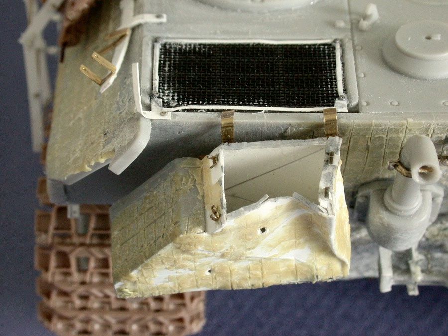 Les grilles sont taillées dans une sorte de tulle en nylon que propose "Dragon" dans son "antique" maquette du "Panzer IV J late" (réf 6022) pour figurer des schürzens «tardive" type "thoma".