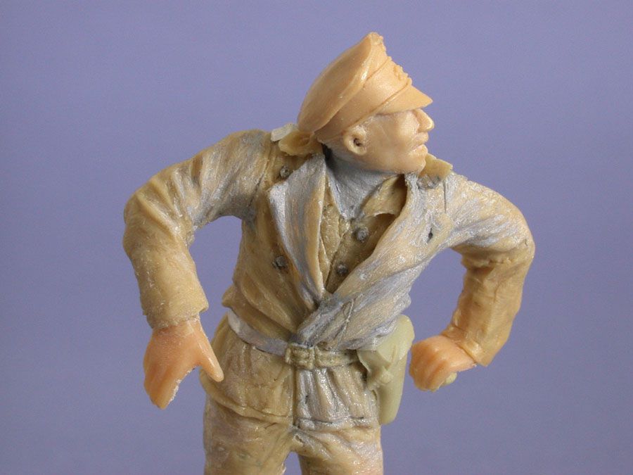 Quand je dis "scratch", c’est tout relatif : l’attitude générale et les vêtements sont de fabrication personnelle mais pas les têtes ("Hornet" et autres), ni les pieds (issus de figurines "Dragon" cannibalisées) ni les mains (provenant de figurines "Dragon", "Tamiya", "verlinden").